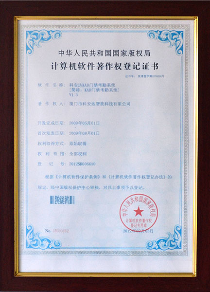 計算機軟件著作權登記證書01